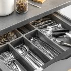 Wykonane z wysokiej jakości tworzywa wkłady do szuflad Axispace pozwalają efektywnie zagospodarować wnętrza szuflad kuchennych. Dzięki specjalnym podziałkom mamy możliwość odpowiedniego posegregowania i uporządkowania łyżek, noży, widelców i innych przydatnych akcesoriów kuchennych. Efekt wizualny to jednak nie jedyna zaleta tego produktu. Wkłady do szuflad są bardzo pojemne i praktyczne oraz pozwalają mieć wszystko w zasięgu ręki, co jest niezwykle istotne dla każdej osoby zajmującej się gotowaniem. W ofercie dostępne są segregatory o różnej wielkości (340-840 mm).