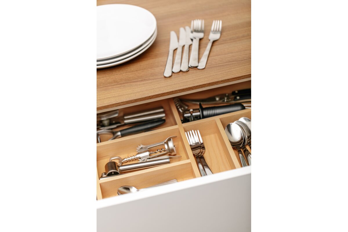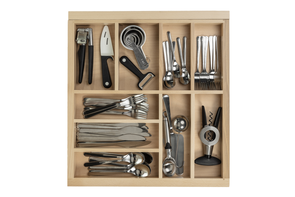- dzięki specjalnym dziewięciu podziałkom mamy możliwość odpowiedniego posegregowania i uporządkowania łyżek, noży, widelców i innych przydatnych akcesoriów kuchennych;