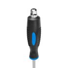 Metalowa końcówka wkrętaka posiada sześciokątny kształt, który umożliwia użycie klucza płaskiego w celu zwiększenia momentu obrotowego. Rozwiązanie to pozwala skuteczniej przełamywać opór zapieczonych połączeń i zapewnia pełną kontrolę nad siłą działania.