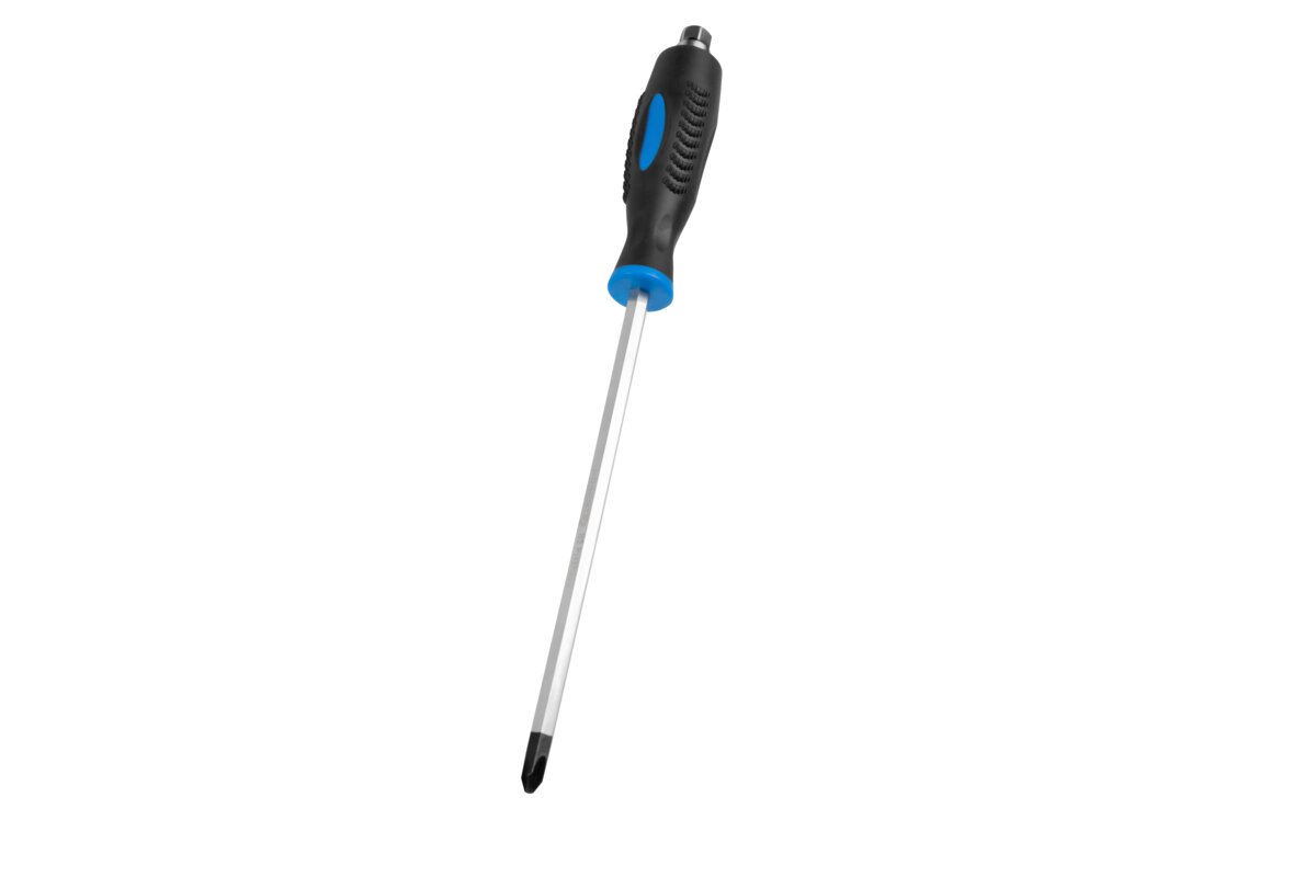 Trzon wykonany z wysokiej jakości stali narzędziowej charakteryzuje się wysoką odpornością na udary, skręcanie i intensywne obciążenia mechaniczne. Precyzyjnie uformowany grot PH1 zapewnia stabilne osadzenie w gnieździe wkręta i ogranicza ryzyko jego wyrobienia podczas pracy pod dużą siłą.
