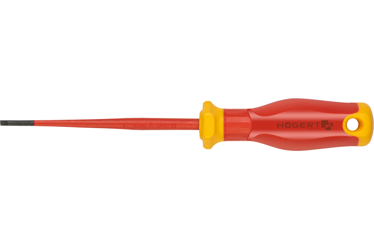 Wkrętaki płaskie 1000 V, atestowane do pracy pod napięciem. Groty wkrętaków zeszlifowane po obu stronach, wyróżniają się zbieżnym i równoległym wyprofilowaniem. Wąski trzon pozwala na pracę z głębiej położonymi wkrętami i śrubami.