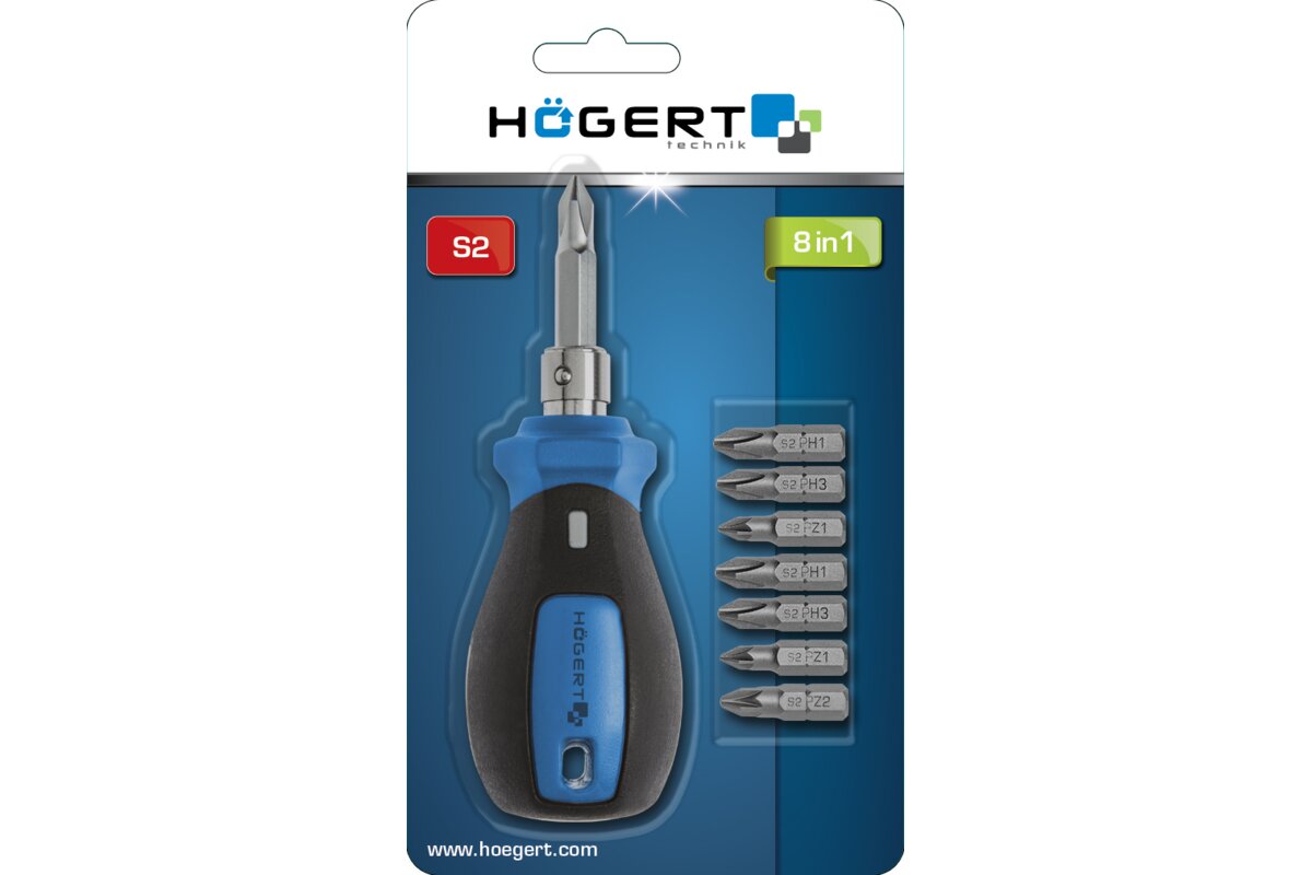Wkrętak z innowacyjnym grotem uniwersalnym umożliwiającym zastosowanie jednej końcówki do wkrętów o 7 różnych łbach z nacięciem krzyżowym. Druga strona grotu pozwala na pracę z wkrętami z nacięciem płaskim.