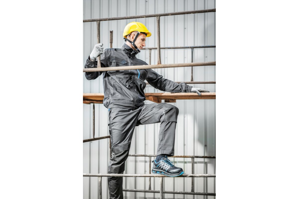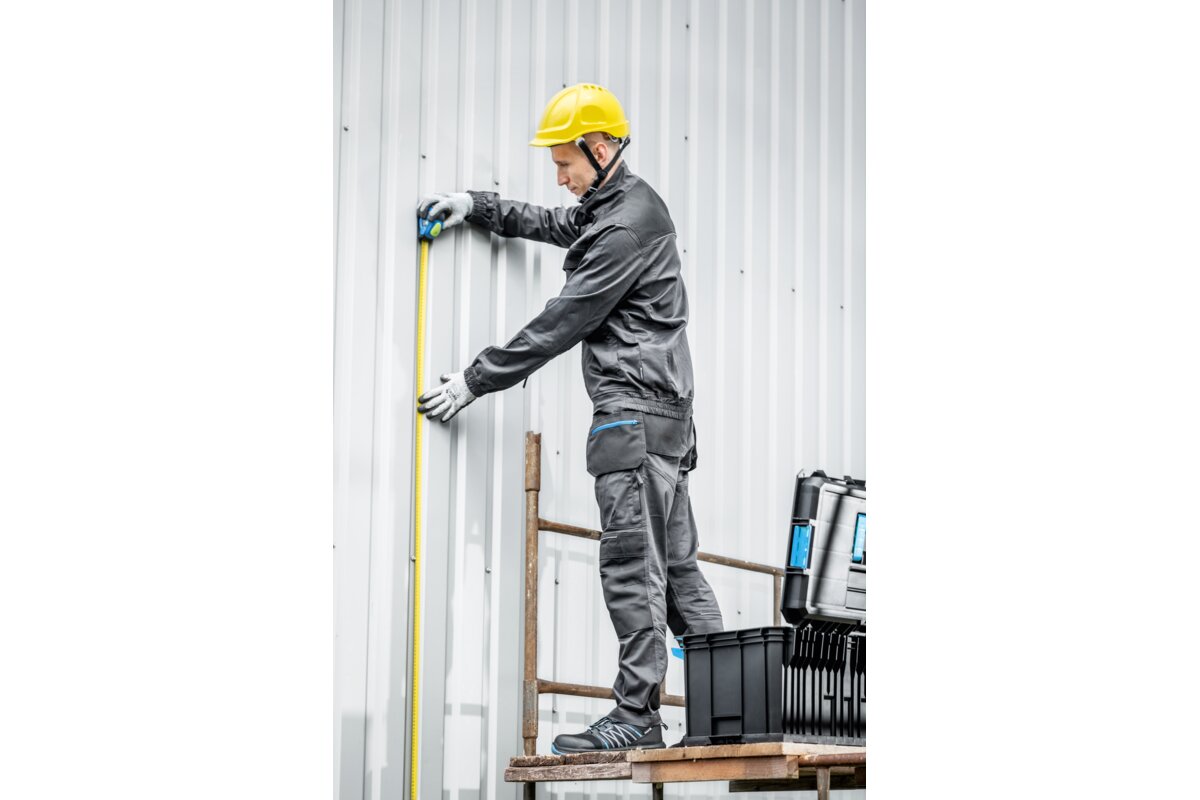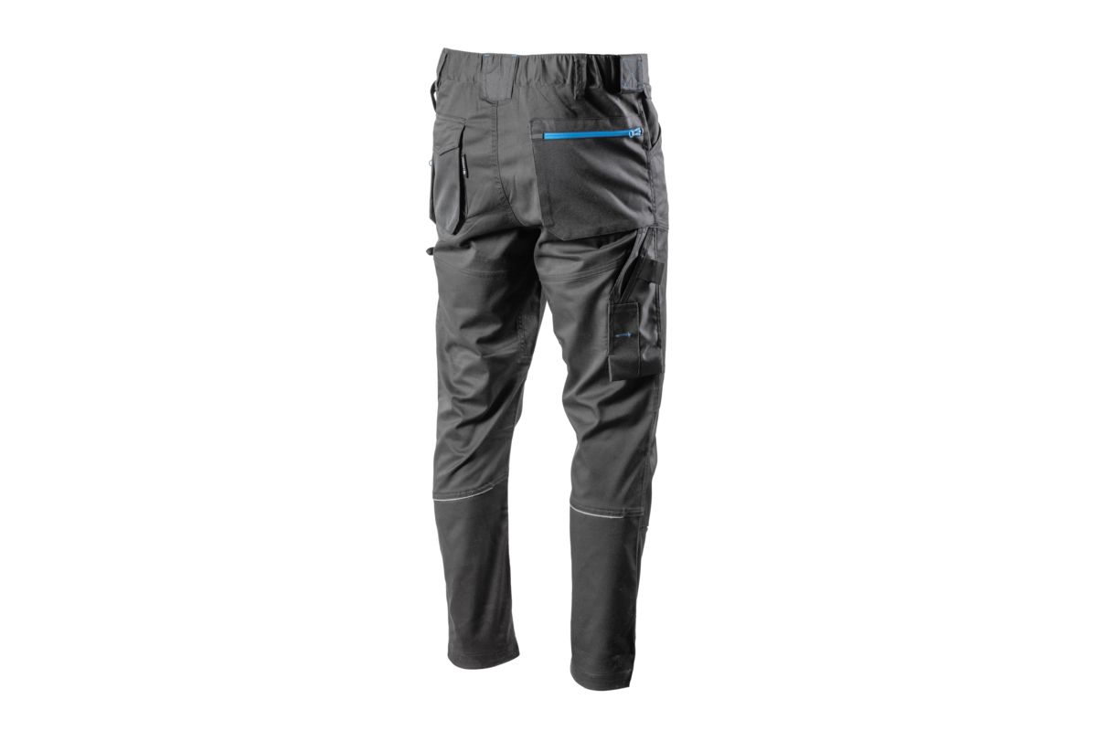 Spodnie ochronne wykonane z elastycznego materiału, który zapewnia pełną swobodę ruchów, idealne do pracy w dynamicznych warunkach. Zastosowanie materiału OXFORD 300D w kieszeniach na narzędzia oraz nakolannikach zapewnia dodatkową trwałość, a rozciągliwy panel w kroku i elastyczny pasek zwiększają komfort. Dzięki funkcjonalnym kieszeniom, dodatkowym szlufkom oraz elementom odblaskowym, spodnie są praktyczne, bezpieczne i wygodne do noszenia przez cały dzień pracy w różnych branżach technicznych i budowlanych.