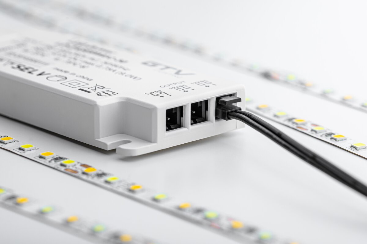 Zasilacz to serce całego układu. Musi być wydajny i niezawodny. Nie inaczej jest w przypadku zasilaczy EASY CLICK. Jest to wysoce wyspecjalizowany zasilacz impulsowy z fabrycznie podłączonym przewodem zasilającym i wbudowanymi gniazdami miniAMP. W zależności od mocy zasilacza użytkownik ma do dyspozycji od 3 do 6 gniazd mini AMP. Zasilacz Easy Click od GTV spełnia najwyższe europejskie normy. Dzięki zastosowaniu obudowy w wersji SLIM łatwiej jest schować zasilacz w przestrzeniach między szafkami.