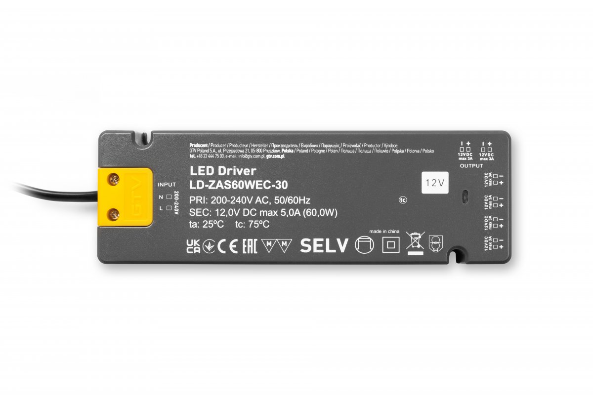 Zasilacz to serce całego układu. Musi być wydajny i niezawodny. Nie inaczej jest w przypadku zasilaczy EASY CLICK. Jest to wysoce wyspecjalizowany zasilacz impulsowy z fabrycznie podłączonym przewodem zasilającym i wbudowanymi gniazdami miniAMP. W zależności od mocy zasilacza użytkownik ma do dyspozycji od 3 do 6 gniazd mini AMP. Zasilacz Easy Click od GTV spełnia najwyższe europejskie normy. Dzięki zastosowaniu obudowy w wersji SLIM łatwiej jest schować zasilacz w przestrzeniach między szafkami.