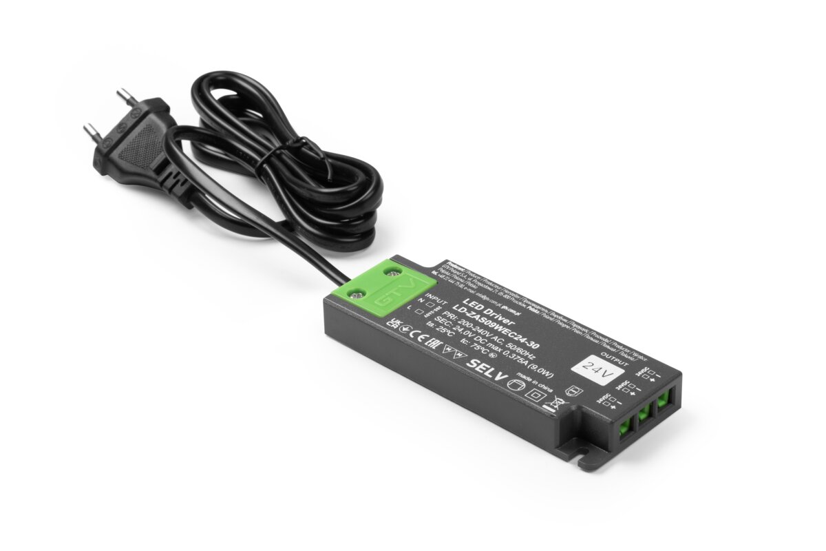 Zasilacz to serce całego układu. Musi być wydajny i niezawodny. Nie inaczej jest w przypadku zasilaczy EASY CLICK. Jest to wysoce wyspecjalizowany zasilacz impulsowy z fabrycznie podłączonym przewodem zasilającym i wbudowanymi gniazdami miniAMP. W zależności od mocy zasilacza użytkownik ma do dyspozycji od 3 do 6 gniazd mini AMP. Zasilacz Easy Click od GTV spełnia najwyższe europejskie normy. Dzięki zastosowaniu obudowy w wersji SLIM łatwiej jest schować zasilacz w przestrzeniach między szafkami.