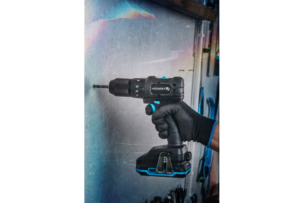 Zestaw zawiera bezszczotkową wiertarko-wkrętarkę udarową 40 Nm (HT2E264-0DD), akumulator 2 Ah (HT2E239-A20) oraz ładowarkę 4 A (HT2E242-C40). Akumulator 2 Ah ładuje się do 80% pojemności w zaledwie 30 minut, co minimalizuje przerwy w pracy.