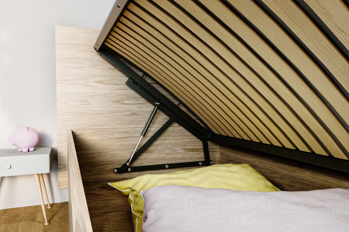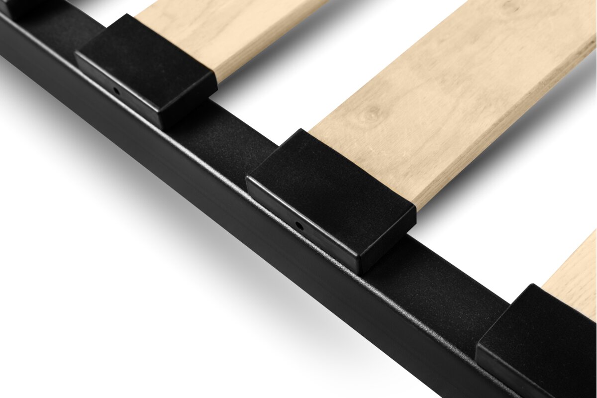 Rama do łóżka sypialnianego pod materac to konstrukcja nośna wykonana z metalu, wyposażona w drewniane listwy sprężynujące, które zapewniają wysoki komfort użytkowania. Wytworzona z wysokiej jakości trwałego i niezawodnego materiału. Konstrukcja została wyprodukowana na bazie profilu 40x30x1,2 mm i łączona przy wykorzystaniu naroży wykonanych z tworzywa sztucznego, co sprawia, że rama jest wyjątkowo wytrzymała i stabilna. Składa się z elementów do samodzielnego montażu. Na ramie rozmieszczone są listwy sprężynujące w ilości 24 szt. Są one połączone z ramą za pomocą plastikowych kieszonek. W bocznej części ramy umieszczony jest długi pręt, który zapobiega opadaniu materaca podczas podnoszenia ramy.