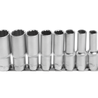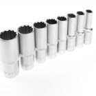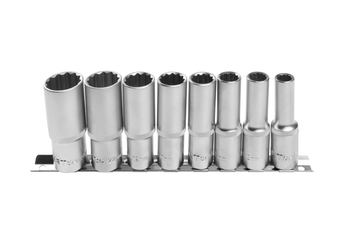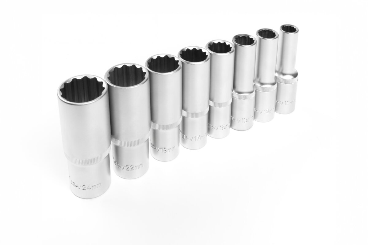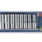Zestaw nasadek umożliwia pracę ze śrubami i nakrętkami o dwunastokątnym kształcie łba.