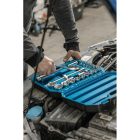Zestaw 24 elementów składający się z grzechotki i nasadek oraz innych akcesoriów 1/2”. Niezbędne w każdym warsztacie czy serwisie samochodowym.