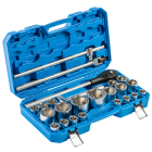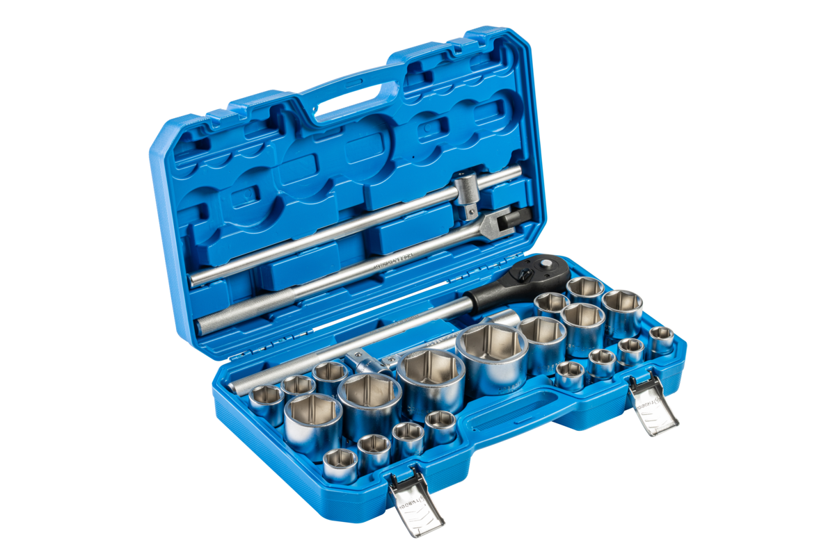 Zestaw 26 elementów składający się z grzechotki i nasadek oraz innych akcesoriów 3/4’’ oraz 1”. Niezbędne wyposażenie w każdym warsztacie czy serwisie samochodowym.