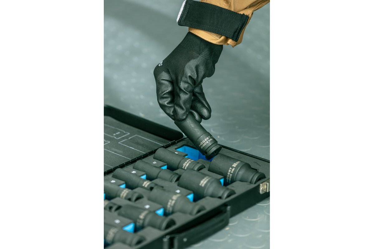 Zestaw nasadek udarowych 1/ 2" składający się z 15 elementów.