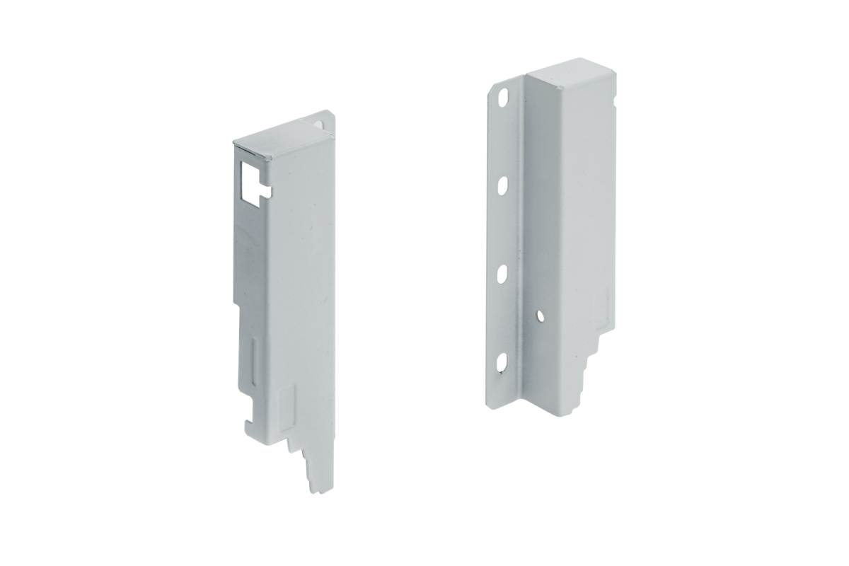 Złączka do mocowania ścianki tylnej w szufladach "średnich" z serii Modern Box PRO. W zestawie znajdują się dwie złączki i wkręty montażowe.