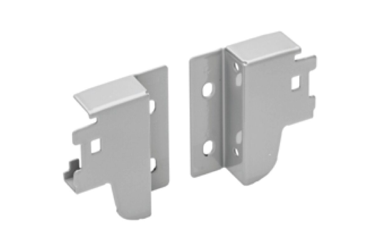 Złączka niska ścianki tylnej wykonana ze stali dostępna w dwóch wariantach kolorystycznych. Umożliwia łatwy i trwały montaż ścianki tylnej szuflady. Komplet składa się ze złączki prawej oraz lewej.