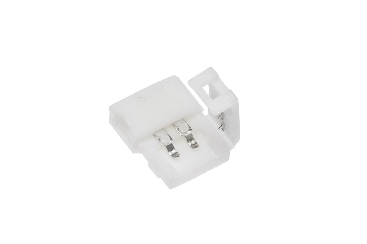 Z jednej strony złączki możemy łatwo wprowadzić przewody zasilające, a z drugiej stronie umieścić taśmę LED o szerokości 8 mm, pamiętając o zachowaniu prawidłowej polaryzacji. Dzięki precyzyjnemu projektowi złączki i ergonomicznemu kształtowi, wystarczy dokładnie kliknąć złączkę, aby taśma LED była gotowa do użycia.