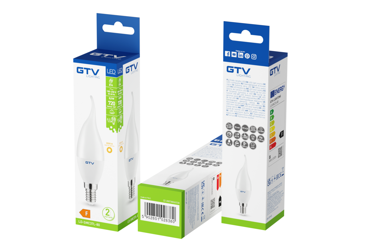 ŹRÓDŁO ŚWIATŁA LED, C37, E14, 8,0W, 720lm, 4000K, AC180-250V, 160°